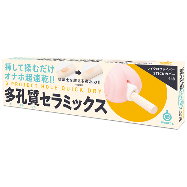 珪藻土を超える吸水力!!(※当社比)超簡単、オナホに挿して揉むだけオナホ超速乾『G PROJECT HOLE QUICK DRY多孔質セラミックス』挿し込んだ瞬間からホールを傷つけないマイクロファイバーのSTICK カバーと棒状の多孔質セラミックスの合わせ技で水を瞬間吸収して乾燥させる!驚愕の吸水力と速乾力に優れた本製品を是非お試しください!